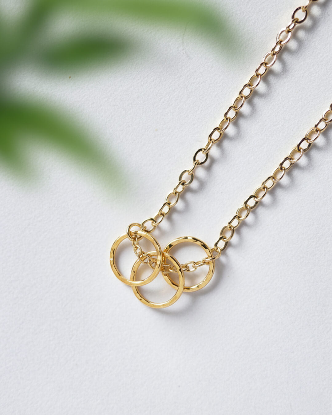 Collar de oro 18k con dije Karma de 3 aros. Diseño simbólico y elegante.